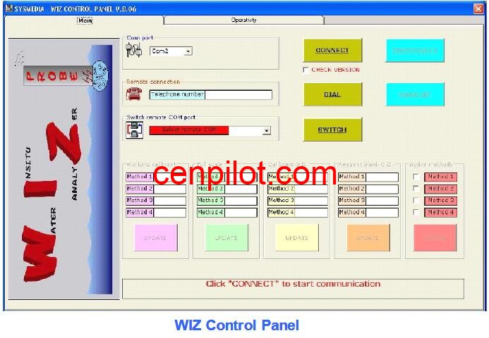 WIZ控制面板软件—Wiz Control Panel(WCP) 通过RS232串行端口与设备外部接口相连,即可对WIZ实现全功能操控。WCP不但可用于本地PC现场操控,还可用于附加了GSM装置后的远程操控: